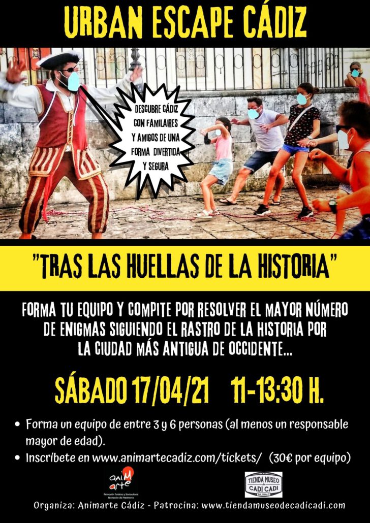 No es fácil escapar de Cádiz. “La perla de occidente” ofrece demasiados encantos, encierra innumerables enigmas y oculta miles de secretos en sus 30 siglos de vida. Tan solo seguir las huellas que 3000 años de historia han dejado en sus calles podrá ayudarte a escapar. Pero CUIDADO: esta ciudad, sus calles, su gente y su historia te atraparán desde que pongas el pie en ella. Ya les ha pasado a muchos. Tratar de descubrirla en un par de horas sin una estrategia es misión imposible, así que no pierdas el rastro ni el tiempo, concéntrate en tu objetivo, trabaja en equipo y obtendrás tu salvoconducto. Ya luego decidirás si quieres escapar de ella… o no. ¡Suerte!…