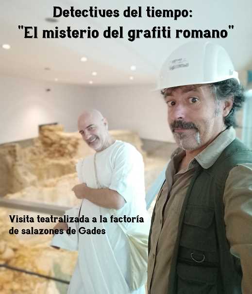 Sinopsis: Un extraño graffiti ha aparecido en el interior de una de las cisternas de la factoría de salazones de Gades que los arqueólogos están excavando. ¿Quién lo habrá pintado?, ¿cuándo?, ¿cómo?… ¿qué «pinta» una factoría de salazones en mitad de la ciudad?… Está claro que las respuestas a tantos enigmas solo están al alcance de los detectives del tiempo. ¡Y de sus ayudantes!…